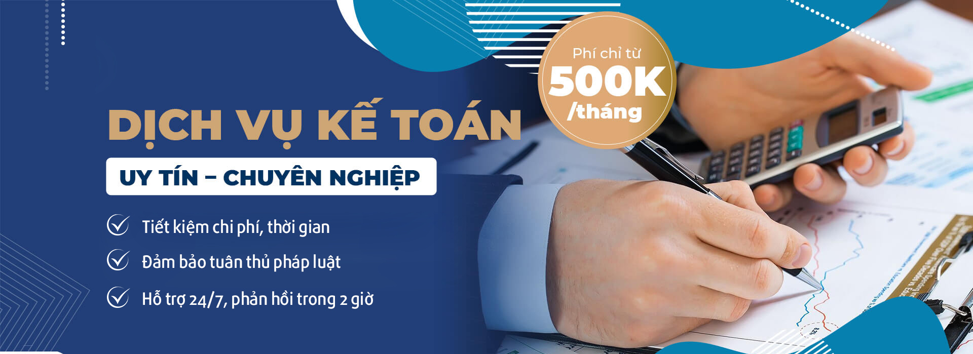 Cung cấp giải pháp kế toán toàn diện trọn gói cho doanh nghiệp. Tiết kiệm chi phí, tiết kiệm thời gian, đảm bảo tuân thủ pháp luật và tập trung phát triển kinh doanh.